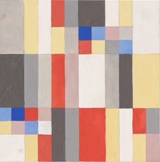 Below: Image of Sophie Taeuber Composition Horizontal Vertical 1916, gouache on paper, 21cm x 21cm